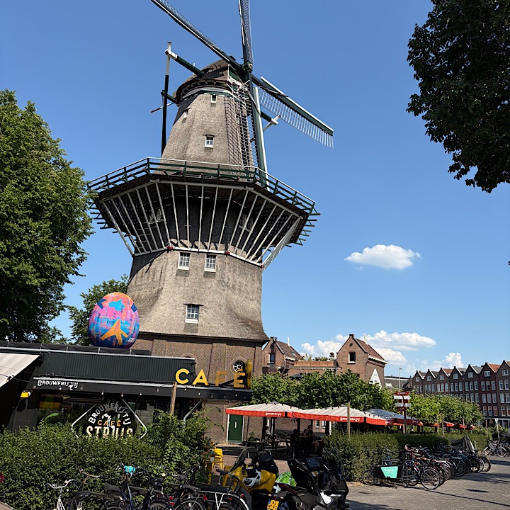 We then planned to make our way back to Central Amsterdam and caught the first bus intending to transfer to another. But at the bus stop I noticed the, a brewery in a windmill that was on the list to visit. At bus stop 2 a local convinced us to step out of the queue and go and give it a visit.