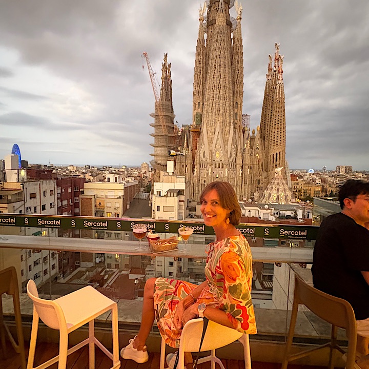 Sercotel Rosellón Hotel, a 10 minute walk from our hotel, has a roofrop bar that overlooks Sagrada Familia. It’s not easy to get in and there was a fair amount of disappointment on the 7th when the weather didn’t play ball.
